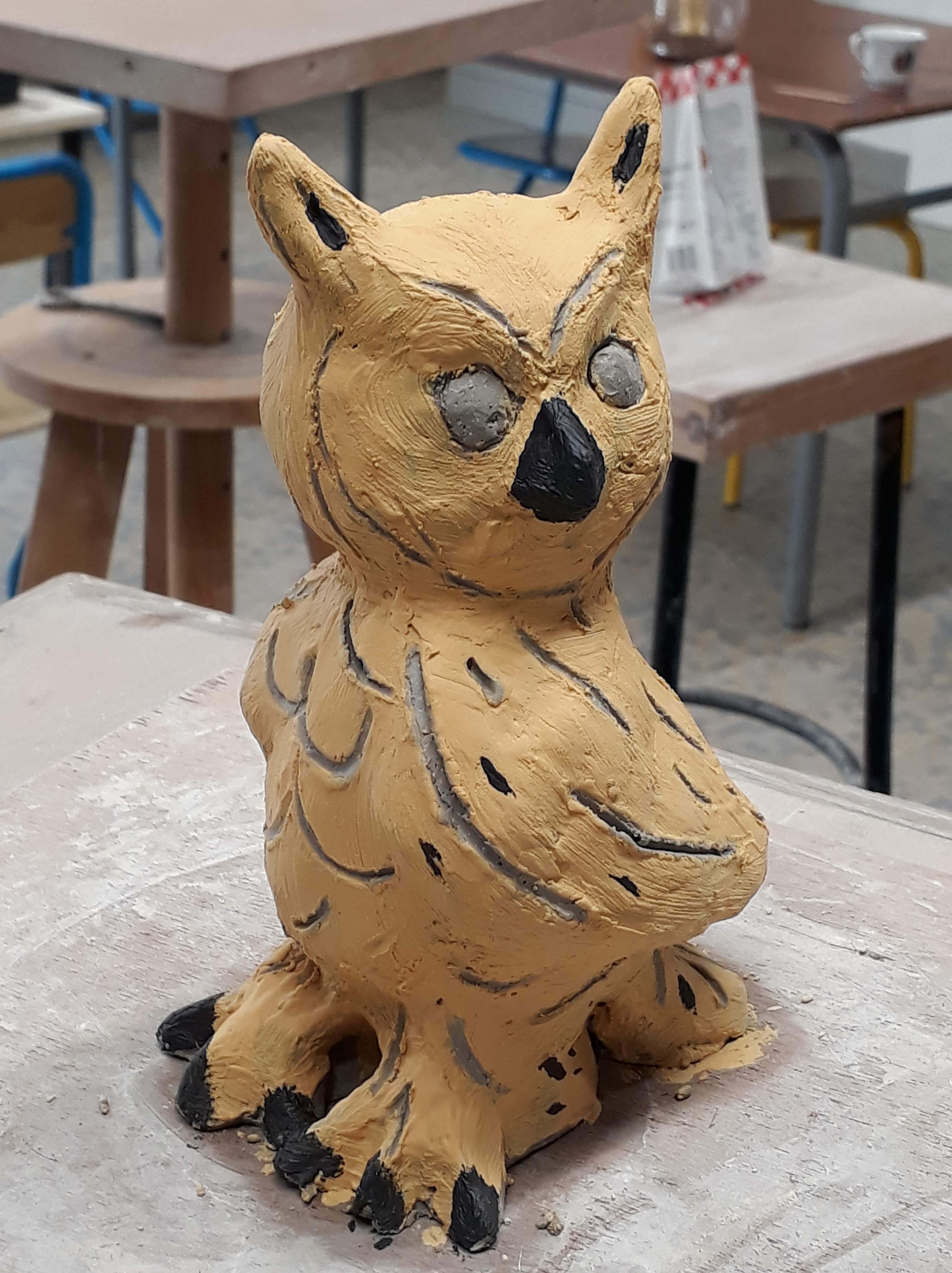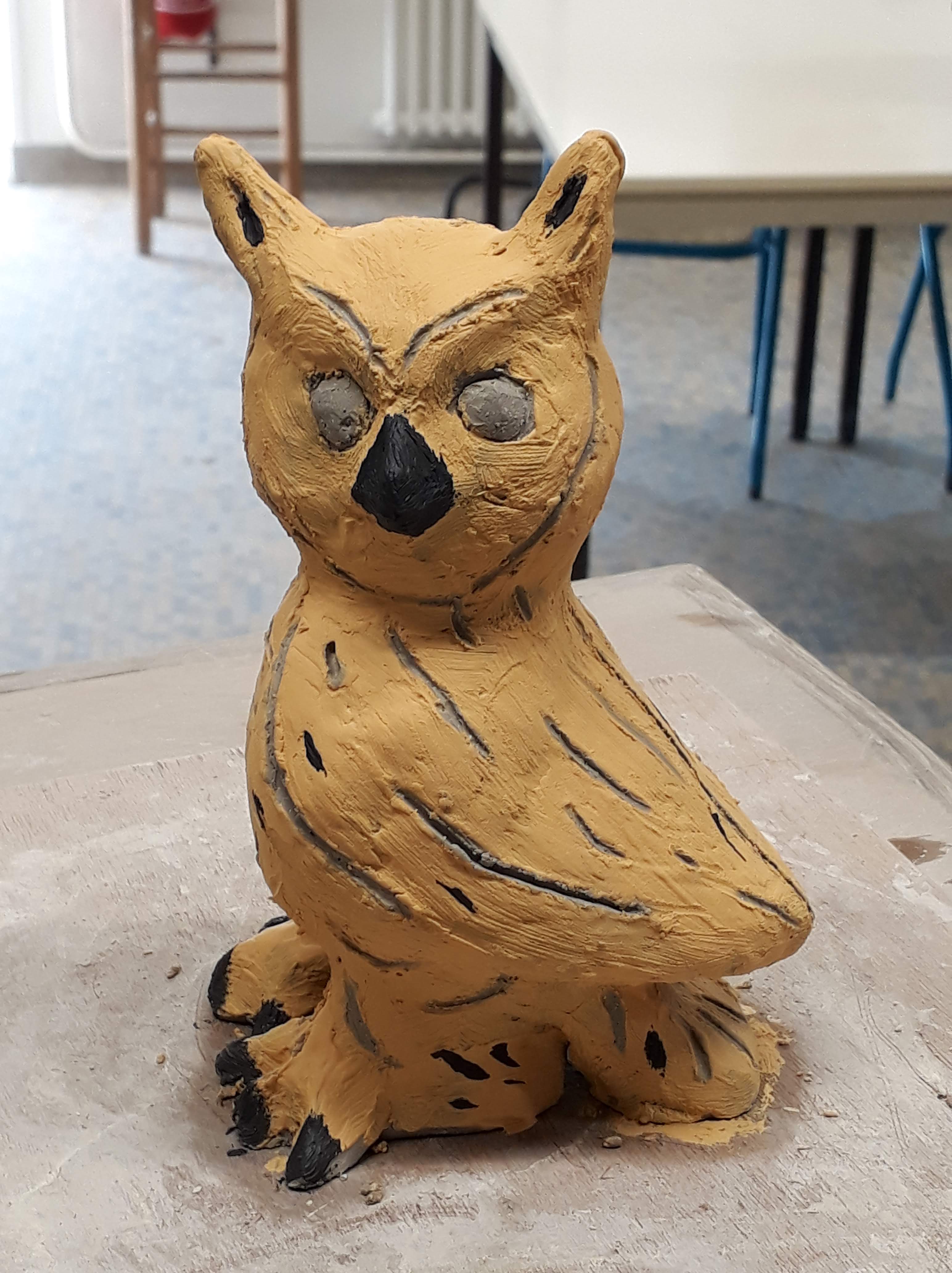 With the little time left before “the summer vacations”, I decided to make a owl, as I never tried to make animals before. Here is the result (It is not yet “cooked”).