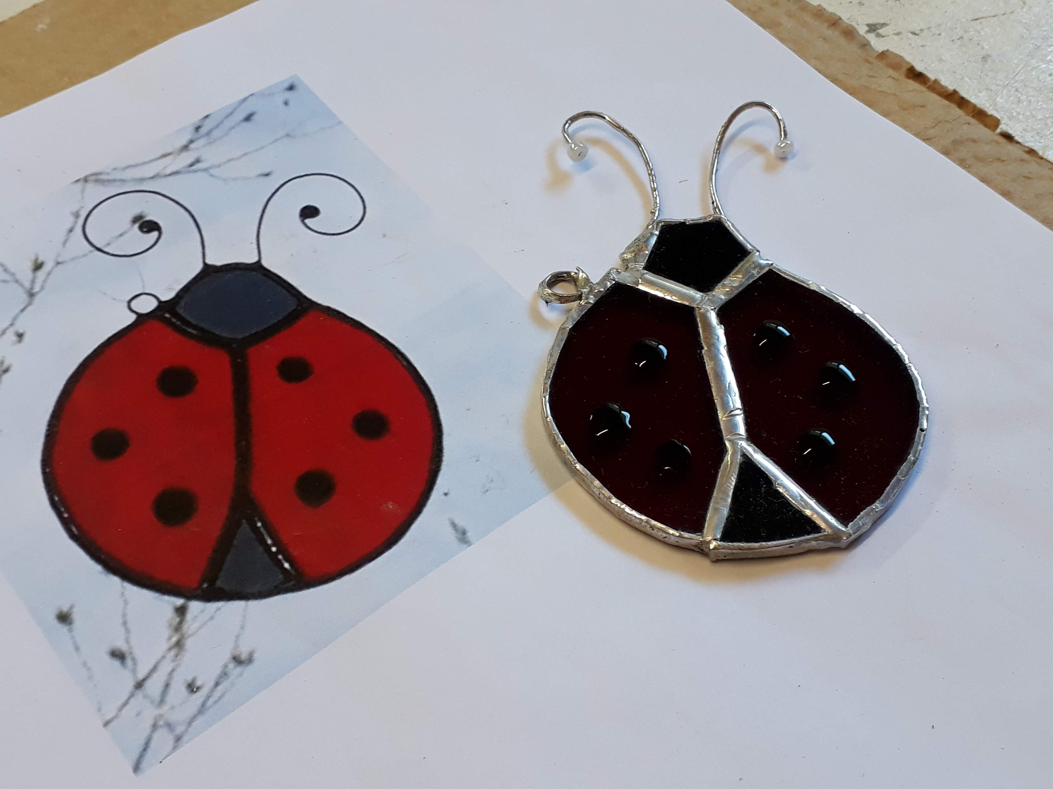 As I am pretty fond of “Tiffany stained glass objects”, I made a blue elephant and a ladybug…